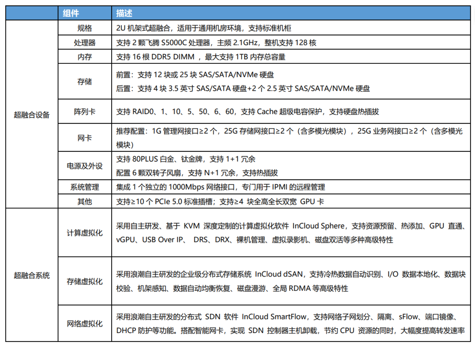 凯发K8国际云海超融合一体机InCloud Rail IR5280F3是一款基于飞腾S5000C处理器的2U机架式云计算基础设施服务平台。该平台具有性能卓越、超大容量内存、丰富扩展等特性,适用于对安全性、可靠性、可扩展性要求较高的各类应用场景,帮助用户快速构建云数据中心,降低 TCO和复杂性,并且能够灵活扩展、快速交付,充分满足政府、金融等行业复杂多样的企业级应用及数据中心建设需求。